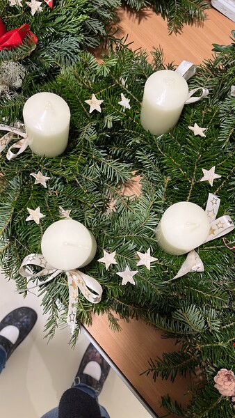 Am 27. November wurden alle Adventkränze im Rahmen einer feierlichen Adventkranzweihe durch Herrn Pfarrer Jakober gesegnet. In einer stimmungsvollen Atmosphäre stimmten wir uns gemeinsam auf den Advent ein, begleitet von besinnlichen Worten und dem Licht der ersten Kerze.